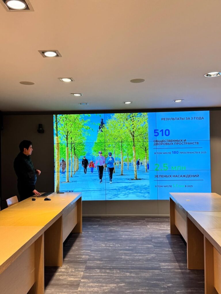 Руководитель центра Данияр Чиндалиев представил вниманию школьников презентацию городских пространств и проектов озеленения столицы.